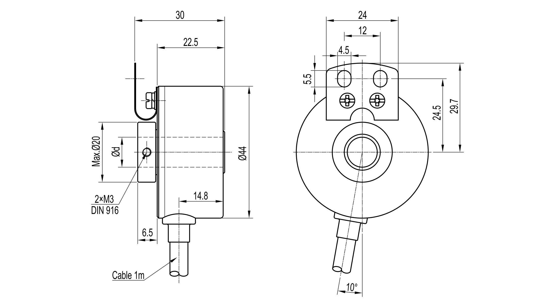 超薄型设计,外径 Ø44mm