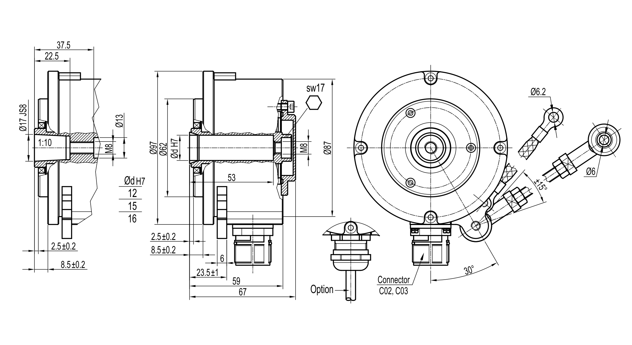 高防护,空心轴 Ø12~Ø17mm